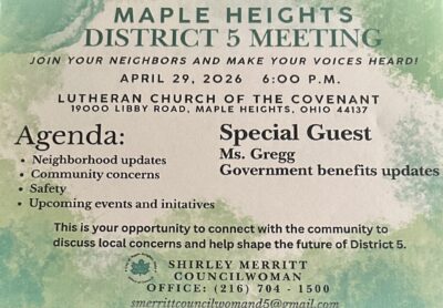 In accordance with Section 121.22 of the Ohio Revised Code, and Chapter 208 of the Administrative Code of Codified Ordinances of the City of Maple Heights, notice is hereby given for the 2026 Public Meeting Schedule for the City of Maple Heights, Ohio. The Charter Review Committee of the City of Maple Heights, Ohio, shall […] |